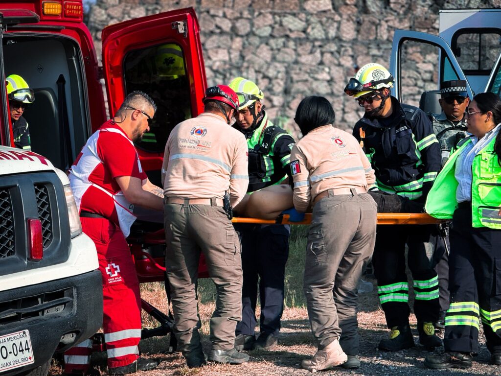 En la atención del incidente participaron de manera coordinada corporaciones como Protección Civil de San Juan del Río, Caminos y Puentes Federales, Guardia Nacional y Cruz Roja Mexicana, quienes trabajaron en el aseguramiento del área y el traslado de los lesionados para recibir atención médica.