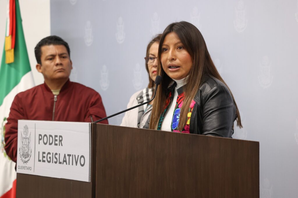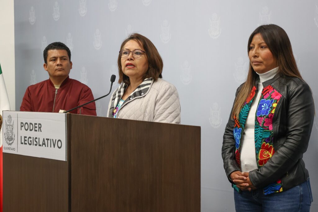 La diputada Rosalba Vázquez Munguía, presidenta de la Comisión de Igualdad de Género y Derechos Humanos, y la diputada María Eugenia Margarito Vázquez, presidenta de la Comisión de Asuntos Indígenas en la LXI Legislatura, acompañadas por la legisladora Blanca Flor Benítez y el regidor Avse Fernando Flores, presidente de la Comisión de Asuntos Indígenas del municipio de Querétaro, manifestaron su absoluto rechazo a los actos de violencia registrados el pasado sábado contra mujeres artesanas de pueblos originarios que laboran en el Centro Histórico de la capital.
