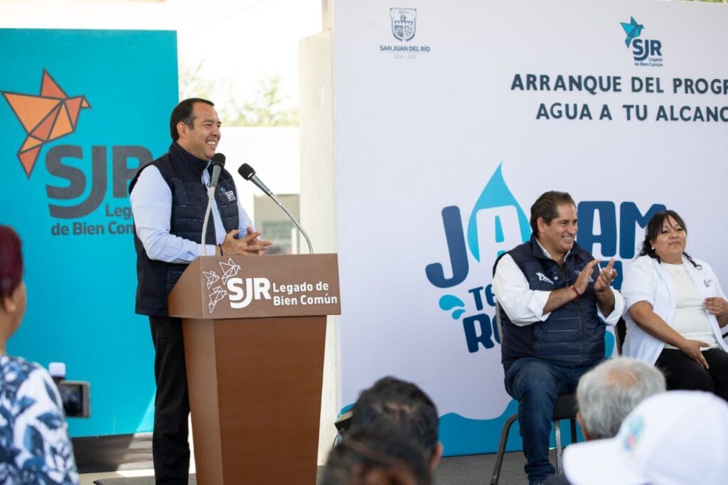 El presidente municipal de San Juan del Río, Roberto Cabrera Valencia, en equipo con el director de la Junta de Agua Potable y Alcantarillado Municipal (JAPAM) Toño Pérez Cabrera, pusieron en marcha el Programa “Agua a tu Alcance”, que consta en la instalación de 50 bebederos en distintos espacios públicos de la demarcación, así como también la entrega de dos pipas para la distribución de servicios de agua y desazolve en diferentes comunidades y colonias de la demarcación.
