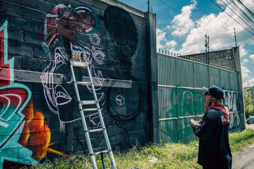 Durante la jornada, los integrantes del colectivo realizaron una intervención urbana en un muro donado en Av Santa Cruz, en Santa Cruz Nieto, donde el graffiti fue presentado no solo como una manifestación estética, sino como un acto de memoria, resistencia y unión.