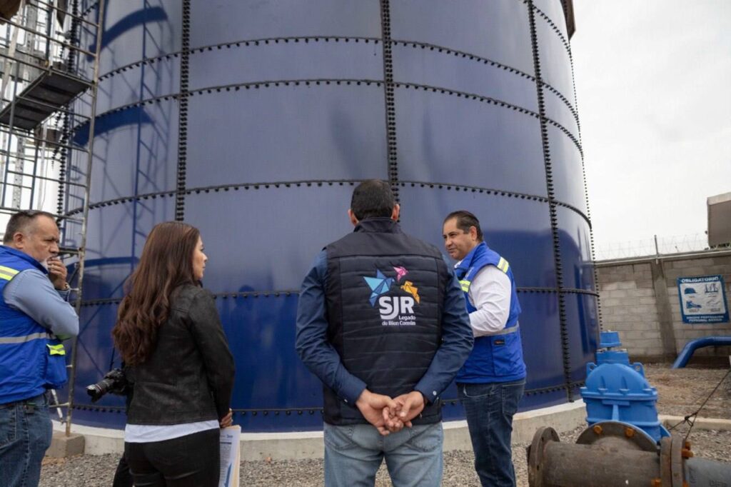 “Les recordamos a nuestra ciudadanía que el 100% del abasto del agua potable en San Juan del Río es del subsuelo, precisamente por eso tenemos pozos para extraer el agua a través de bombas y muchas veces por temas de fallas eléctricas, de que se va la luz o tenemos algún trabajo de mantenimiento, se va el agua, por eso estos grandes tanques para que no falte el agua, y cuando tengamos alguna situación sigamos teniendo un almacenamiento bastante grande para poder garantizar el abasto de agua”, comentó Toño Pérez.